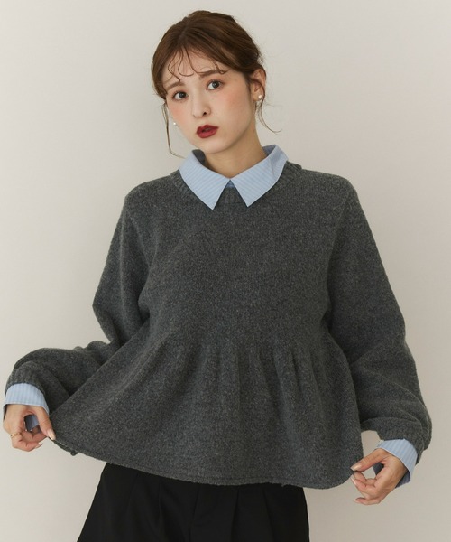 襟付き×ペプラムで魅せる大人のレイヤード風トップスまるでシャツを重ねたような、レイヤード風デザインが目を惹くシャツドッキングペプラムニット。トレンドの“襟付きデザイン”で、一枚でコーデが決まるこなれトップスに仕上げました。ニット部分は程よく厚みがありながらも柔らかく、体のラインを拾いすぎない絶妙なシルエット。ふんわり広がるペプラムラインでスタイルアップも叶えます。配色は、やさしげなベージュ、洗練された印象のグレー、モードにもフェミニンにも着こなせるブラックの3パターン。オンオフ問わず使えてきちんと感も可愛げも欲張れる、今季おすすめの“主役ニット”です。・素材の特性上、水や汗などの湿潤状態で放置すると収縮する恐れがあります。・濃色の商品は染色の特性上、発汗や摩擦等により色落ちまたは色移りする恐れがありますので、お取り扱いには十分ご注意ください。・洗濯時に多少色落ちすることがありますので、他のものと分けて洗濯するようお願いします。・濡れたままで長時間放置すると、脱色や変色の原因になります。・強い日光および強い照明を長時間受けると、変色する場合がありますので、ご着用および保管の際にはご注意ください。・生地の特性上、摩擦によりピリングが起こることがあります。着用時およびクリーニング等の取り扱いにご注意ください。■公式 Instagram【@olu.myself】新作やキャンペーン情報などを発信していますˎˊ˗ぜひお買い物の参考にしてください。
