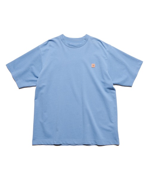 SNの合字ロゴをエンボスしたパッチを左胸にあしらったワイドTEE。 この新しいロゴはタイポグラフィーをはじめとするクリエイティブ分野で名高いデザインスタジオ、Stockholm Design Labが制作したもの。 インレイ編みで厚みを抑えたドライタッチのコットンボディを使用しています。水に強いレザーパッチ仕様。 ブラックとホワイトに、グレイッシュなカーキとブルーを加えた4色展開。