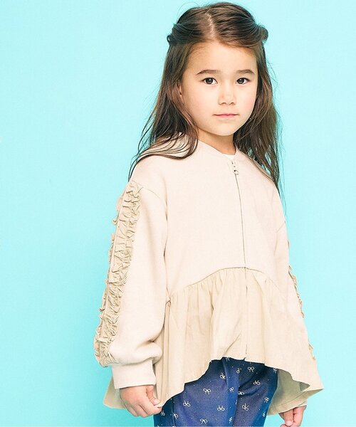 Seraph(セラフ)のカーディガン・ボレロ「トップスとしても使える袖フリルブルゾン」は、どんなお洋服にも合うので着回し力抜群!一枚あると便利です!【取り扱い表示】40℃を上限に洗濯機で洗濯、デリケートアイテムモード、ネット使用、漂白剤を使用禁止、色物は同系の色と一緒に、洗濯後直ちに取出し、タンブル乾燥不可、日陰で吊り干し、低温でアイロン、商業ドライクリーニング不可【ご注意事項】この商品は着用中の摩擦や洗濯により毛羽の乱れ、毛羽脱落、毛玉が生じることが有ります。できるだけ美しくご利用頂く為に次のことにご留意下さい。○毛玉は毛玉取り器またはハサミで丁寧にカットして下さい。○毛羽が他に付着した際はテープやブラシで除去して下さい。○他の製品とは洗わず、単独でお洗濯して下さい。○タンブル乾燥はお避け下さい。※商品により多少の誤差が生じる事がございます。あらかじめご了承下さい。※ご使用のパソコンやブラウザの環境により、実際の色とは多少異なる場合がございます。※モデル着用写真についてはイメージの為、実際の商品とカラーや仕様が異なる場合がございますので、商品画像をご覧ください。【 SERAPH -セラフ- 】毎日に新鮮なアクセントが加えられるナチュラルなデイリーウェア。ファッションの流れに敏感な、おしゃれなママとキッズのために、クリーンで繊細なデザインとディテールをやわらかく温かみのある優しい素材で表現したブランド。ボーダー、チェック、ストライプといったシンプルなテキスタイルにトレンド要素をプラス、ナチュラルな色使いを大切にウェアから雑貨まで、キッズのカジュアルで少し上品なコーディネートを提案します。