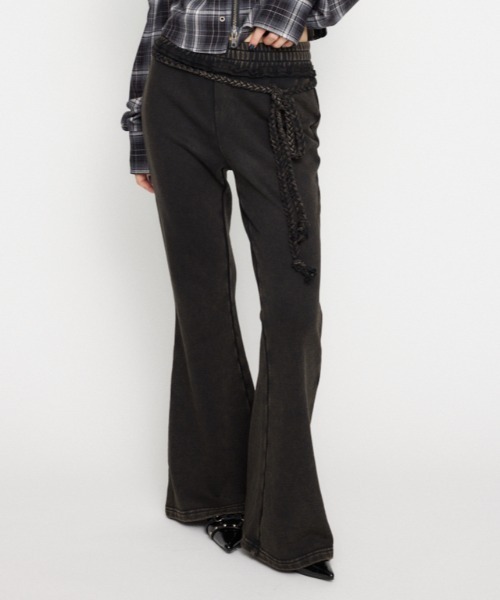 ■POINT:ムラ感ある加工がLAGUA GEMらしいスウェットパンツ。 ■DETAIL:タイトめなフレアシルエットで美脚効果が期待できます。 共地で編まれた紐をお好みで腰に巻いて着用して頂けます。 ■STYLING:ルーズなシルエットのトップスやチュニックなど、バランスを取るスタイリングがおすすめ。 ■透け感:なし ■光沢感:なし ■伸縮性:あり ■裏 地:なし ONE&ONLY ITEM 1点1点色合い、風合いや表情が異なります。この製品の特徴です。 【カラー:BLKにアテンション有り】 本品は素材の特性上色落ちします。 洗濯、クリーニング、着用(使用)時に他の衣類や雑貨、家具類に色移りする事があります。 特に汗や雨等で湿った状態では、色落ちが顕著になります。 白、淡色との組み合わせは避け、お取り扱いには十分ご注意下さい _____________________ LAGUA GEM(ラグア ジェム) ー媚びない強さとしなやかな女性らしさが共存するスタイルー カジュアルなアイテムにストリート&ヴィンテージテイストをミックス メンズライクになりすぎない女性らしさとバランス感のある着こなしにこだわった新しいカジュアルスタイルを提案 _____________________ ▼商品のお気に入り登録 お気に入りアイテムの値下げ・再入荷・在庫1点などの通知を受け取ることができます。 ▼ブランドのお気に入り 登録新商品や再入荷、セール、クーポン配布などお得な情報を受け取ることができます。 AUTUMN & WINTER ( 秋服 / 冬服 )