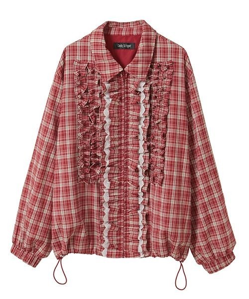 さらっとした素材感のT/Rチェック生地を使用した、ボリュームたっぷりな身頃のフリルが目を惹くブルゾン。フロントのフリルにはコットンレースをMIXしガーリーに◎ファスナーは両開きになっており、お好みで調節いただけます。同色のバルーンスカートと合わせたセットアップのスタイリングもおすすめです。・・・・・・・・・・・・・・・・・・・・・・透け感:なし・伸縮性:なし・生地の厚さ:普通・裏地:あり・・・・・・・・・・・・・・・・・・・・・・ベージュ、レッド/赤、ブラック/黒の3色展開#カジュアル#ガーリー#チェック##フリルディティール#キャンスパ#キャンスト●Candy Stripper/キャンディストリッパー●-BRAND CONCEPT-NO RULE, NO GENRE, NO AGE年齢や性別にとらわれず、自由に自分を表現出来る服【お買い物をもっとお楽しみ頂くために】▼商品のお気に入り登録▼完売カラーの再入荷通知や、ラスト1点通知、プライスダウンしたセール通知も受け取れる♪▼ブランドのお気に入り登録▼新作や再入荷等、いち早くブランドのお得な情報が受け取れる♪