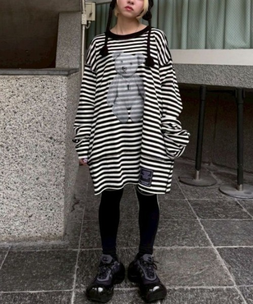パンキッシュなベアのぬいぐるみのフォトプリントがインパクト大なトップス。 ユニセックスでご着用いただけるオーバーシルエットに仕上げました。 切り替えのステッチは配色にすることでアクセントをプラス。 ニューレトロなビビットなカラーリングのライトブルー×ブラック・ピンク×ブラック、 コーディネートに取り入れやすいオフホワイト×ブラックの3色をご用意。 トップスとしてはもちろん、1枚でワンピース風の着こなしもオススメ。 ・・・・・・・・・・・・・・・・・・・・・・ ・透け感:なし ・伸縮性:あり ・生地の厚さ:普通 ・裏地:なし ・・・・・・・・・・・・・・・・・・・・・・ ・オフホワイト/白×ブラック/黒、ライトブルー/水色×ブラック/黒、ピンク×ブラック/黒の3色展開 #カジュアル#POP#ボーダー#ユニセックス#キャンスパ#キャンスト ●Candy Stripper/キャンディストリッパー● -BRAND CONCEPT- NO RULE, NO GENRE, NO AGE 年齢や性別にとらわれず、自由に自分を表現出来る服 【お買い物をもっとお楽しみ頂くために】 ▼商品のお気に入り登録▼ 完売カラーの再入荷通知や、ラスト1点通知、プライスダウンしたセール通知も受け取れる♪ ▼ブランドのお気に入り登録▼ 新作や再入荷等、いち早くブランドのお得な情報が受け取れる♪