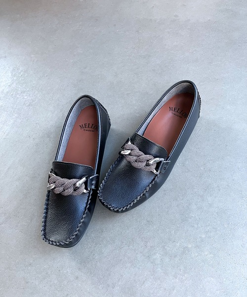 きらりと光るビットがシンボリックな、王道のカジュアルシューズカチっとしすぎないリラクシーな雰囲気が◎人工皮革を使ったモカシンシューズ。小指の当たる部分は一枚革で仕立て、足が当たる部分がなく軽くてソフトな履き心地。金糸が入った太めの組紐を大胆にモチーフとしてアレンジ。大人っぽさに程よいカジュアル要素をプラスし、お仕事やちょっとしたお出かけなど毎日履けるフラットシューズに仕立てました。ローファーのような雰囲気を持ち、大人のコーディネートに取り入れたい1足です。■裏素材を使わない仕様で足が痛くなりにくい足の指が触る部分は柔らかい表素材1枚で仕立て、足当たりが痛くならないよう工夫しています。■天然皮革に似た風合いを再現できる人工皮革本革に近い見た目や手触り、柔らかさを持ちながらも、比べて「耐久性があり軽い」という特徴を持っています。■優れた通気性とクッション性、耐久性も兼ね備えたインソールを採用高い抗菌・防臭効果に加え、通気性もよく、靴内の湿度も コントロール。さらにインヒールで脚長効果、長時間履いても疲れにくい、快適な履き心地をお届けします。《着用感》サイズ表記通りのフィット感です。インソールクッションのボリュームがあるので甲の部分はあまり高くありません。人工皮革なので履いているうちに本革のように伸びたりはしませんのでご注意ください。※画像の商品はサンプルです。お届けする商品に仕様・サイズ等の変更が生じる場合がございます。予めご了承ください。