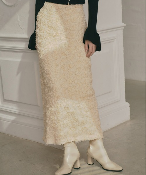 トップスを選ばない華やかスカート繊細なフラワーモチーフを全体にあしらった、上品な華やかさが魅力のIラインスカート。縦のラインを強調するすっきりとしたIシルエットが、可憐なディテールを引き立てながらも甘すぎず、大人の女性らしさを感じさせるバランス感に仕上がっています。さらに裏地には程よく伸縮性のある素材を採用し、ストレスフリーな穿き心地。ヒップラインを拾いすぎずタイトすぎない美シルエットも嬉しいポイントです。Tシャツやブラウスはもちろん、ショート丈のニットやカーディガンとも好相性で、オンにもオフにも活躍してくれる万能ボトムス。カラーは華やかでピュアな印象の「ホワイト」柔らかくフェミニンな「ベージュ」シックで着回し自在な「ブラック」の3色展開。ベーシックに一枚加えるだけで、“Olu.らしい可憐さ”がスタイルに咲きます。・洗濯は必ずドライクリーニングでお願いいたします。・ドライクリーニングの際は、裏返しにしてクリーニングネットを使用してください。・クリーニングからお戻りの際は、袋から出して日の当たらない場所で保管してください。・アイロンは、裏から軽く当ててください。■公式 Instagram【@olu.myself】新作やキャンペーン情報などを発信していますˎˊ˗ぜひお買い物の参考にしてください。