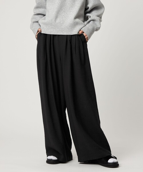 軽くてイージーながらも存在感のあるパンツが登場 ■デザイン 立体感のある3タックが、ウエストまわりに自然なボリュームを生み出し、ワイドなシルエットを美しく描くイージーパンツ。 ウエストはゴム仕様でリラックスした穿き心地で、フロントのタックと表情のある素材で存在感のあるアイテムです。 Tシャツやシャツをラフに合わせるだけで、都会的なリラックススタイルを演出します。 ■素材 薄くて軽さのある、表情のある生地を使用。 夏の時期に最適な涼し気素材です。 ■コーディネート ワイドシルエットなのでトップスはすっきりとまとめるのがおすすめです。 Tシャツやシャツ、ベストなど何にでも合わせやすく、ストレスフリーな着心地でデイリーにお使いいただけます。 ============================ 裏地:あり 透け感:あり 伸縮:なし 光沢感:なし 機能性:なし ケア方法:手洗い可 ============================ <CITEN(シテン)> 〜FUTURE ESSENTIALS.〜 これからの良い服って、なんだろう。 Long Lifeで、快適で、いろんなライフスタイルにもフィットする服ではないでしょうか。 そんな服をカタチにするために必要なエッセンスで構成されるブランド「CITEN」。 素材や機能を丁寧に選ぶ、Well - Choice。 着る人が大切に使えるような工夫を凝らす、Well-Design。 価格を超えた価値を提案する、Well-Price。 Wellの積み重ねから、Well-Madeな服へ、そして着る人の暮らしに欠かせない服へ。 「CITEN」は新たな時代の、新たな視点・支点・始点です。 【注意事項】 ※画像の商品はサンプルです。 ※商品に「取り扱い上の注意書き」、「洗濯表示」がございます場合は、使用前に必ずご確認ください。 ※商品画像は、光の当たり具合やパソコンなどの閲覧環境により、実際の色味と異なって見える場合がございます。あらかじめご了承ください。 ※商品の色味の目安は、商品単体の画像をご参照ください。 店舗へお問い合わせの際は、全国のCITEN各店舗まで下記の品名/品番をお申し付けください。 品名:3タックリラックスイージーワイドパンツ 品番:42146000000