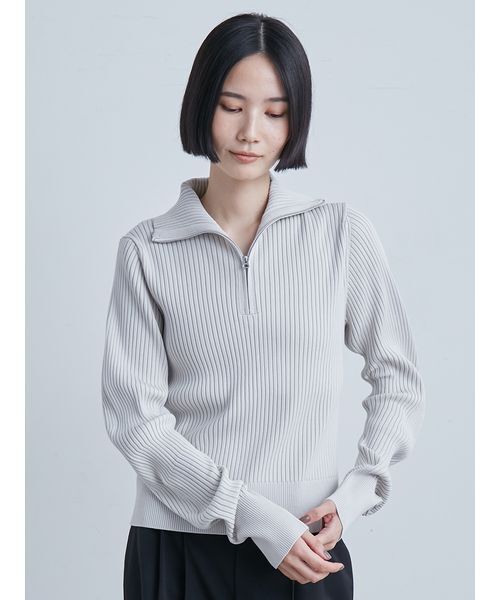 ※BLKはUSAGI ONLINE・ZOZOTOWN限定カラーとなります。【DESIGNPOINT】【BLK:USAGI限定】MIESROHE定番のウェーブスリーブニットを、今季トレンドのハーフジップスタイルにアップデート2WAYの襟デザインと、誰が着ても美しい構築感を演出するウェーブ袖が特徴。さらりとした着心地の程よい厚みのニットは、長いシーズン活躍します。【FABRIC】透け感:無し/裏地:無し/伸縮性:有り※照明の関係により、実際よりも色味が違って見える場合があります。またパソコン・スマートフォンなどの環境により、若干製品と画像のカラーが異なる場合もございます。予めご了承ください。商品の色味は、商品単品画像をご参照下さい。 ※商品画像はサンプルのため、色味やサイズ等の仕様に変更がある場合がございますので、予めご了承ください。