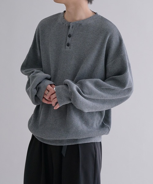 ------------------------------------------------------【epnok / エプノック】毎週(金)に新作をリリース新作情報はInstagram公式アカウントからチェック!↓【@epnok_official】------------------------------------------------------こなれたデザインのヘンリーネック。◆ガシガシ着られるワッフル生地◆差別化できるヘンリーネック◆ゆったりとしたルーズシルエット◆スノーウォッシュ加工をアソート【生地】ガシガシと着られるワッフル生地を採用。程よく肉感のあるボディで程よい重厚感があります。【デザイン】こなれた雰囲気を演出するヘンリーネックのデザイン。首元の露出を抑えたV字にしたことで、Vネックが苦手な人でも着こなしやすいデザインに仕上げました。ベーシックで着こなしやすいブラック・グレーに加えて、スノーウォッシュ加工を施したブラック系その他の3色展開。【シルエット】身幅をゆったりさせつつも着丈は短めに仕上げたepnokのルーズシルエット。身長や体型を問わず幅広い方に着て頂けるよう、オーバーなサイジングとすっきりとした見た目を両立しました。程よいドロップショルダーと肘が隠れるほどのゆったりした袖丈でこなれた雰囲気を演出します。着るだけで格好良く見えるような美しいシルエットを作り上げました。【epnokの身長別推奨サイズ】〜165cm Sサイズ166〜167cm S or M168〜173cm Mサイズ174〜175cm M or L176cm〜 Lサイズ【epnok / エプノック】日常の何気ない一瞬をも引き立てる。「epnok」は“当たり前”に遊びを効かせた、ベーシックなモダンスタイルを提案します。-オフィシャルInstagramにて最新情報や限定情報を毎日更新中!-▼商品のお気に入り登録完売カラーの再入荷通知や、ラスト1点、セールの通知をお知らせ致します。▼ブランドお気に入り登録新商品や再入荷など、いち早くブランドの情報を受け取ることができます。※サイトに表示されているカラー名と実際のお届け商品に記載されているカラー名が異なる場合がございます