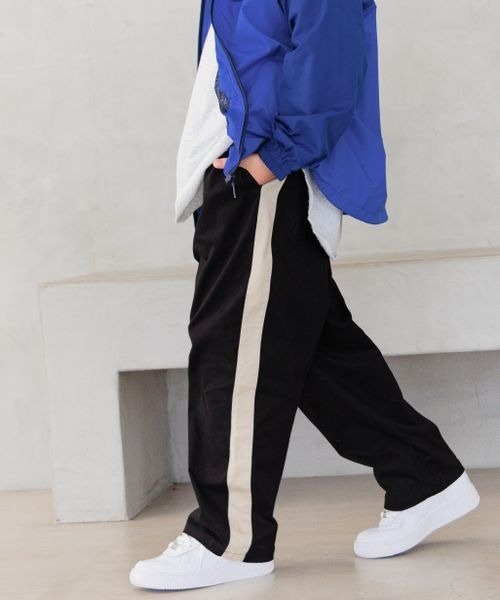 ルーズなフィット感が大人顔負けワイドパンツ ーーー ★おすすめポイント★ [1]全体にルーズなシルエットでストリートテイスト [2]サイドラインのデザインがクールな印象 [3]ストレッチ素材を使用し、動きやすさもGOOD! ーーー [fabric] ストレッチの効いた綿混のライトツイル素材。 厚すぎず薄すぎずオールシーズン着用できる生地感です。 [design] リラックスしたルーズなシルエットに、 ワイドラインを効かせたストリートスタイルにおすすめなデザイン。 ウエストは調整可能なアジャスターゴム仕様です。 ポケットも4箇所ついて通学にもOK! [styling] プリント入りのBIG TeeやボーダーTeeと合わせて スケータースタイルがおすすめ。 全体にルーズな雰囲気にすると大人顔負けのスタイルに♪ ※屋外での撮影画像は光の加減で実際の商品より明るく見えたり、風合いが異なって見える場合がございます。 商品の色味はスタジオ撮影の画像を参考にして下さい。 ------------------------------------- ≪お買い物をよりお楽しみいただくために≫ ◆商品のお気に入り登録(ハートマークをクリック) 完売カラーの再入荷通知や、完売間近の通知、セールの通知も受けることができます。 ◆ブランドのお気に入り登録 新商品や再入荷など、いち早くブランドのお得な情報を受け取ることができます。 -------------------------------------
