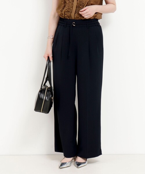 ◇25SS MICO COULIER 薄手でサラッと”涼しくきちんと見え”が叶う ツータックセミワイドパンツ ◆Point ・サラっと落ち感があり、たてよこに伸びるハイストレッチのワッシャーカルゼ素材を使用 ・シワにならずストレッチ入りで動きやすい、ストレスフリーな着心地 ・センタープレス入りですっきり見え&きちんと感もキープ ・ベルト付きでインスタイルもきれいに決まる ・シンプルなデザインで合わせるものを選ばない着回し力の高さもポイント ・お揃いのジレジャケットと合わせてセットアップで着るのもおすすめ◎ ・ロングシーズン楽しめる素材で、オンオフ問わず活躍する万能パンツ ・手洗い可能なイージーケア素材 <同生地シリーズ> 5-0818-4-04-002 《セットアップ対応》ハイストレッチカルゼワッシャージレジャケット ---------------------------------------------------------- 透け感:なし 裏地:なし 伸縮性:あり 光沢感:なし 洗濯:手洗い可 ---------------------------------------------------------- 気になる商品は、お気に入り登録がオススメです! クーポン情報、入荷情報が通知されるようになります。 ---------------------------------------------------------- ●お取扱い上のご注意● 末永くご愛用頂くために、アテンションタグを必ずご確認の上、着用又はお取り扱い下さい。 ※店頭及び屋外での撮影画像は、光の当たり具合で色味が違って見える場合があります。商品の色味は、スタジオ撮影の画像をご参照下さい。 ※商品画像に関しては出来る限り忠実に表示出来るよう努めておりますが、お客様がご利用のモニターの設定及び特性により、実際の商品と比較し色味に若干の誤差が生じる場合があります。 ※製品洗い加工の商品は、多少の歪み、シワなどが見られたり、風合いやサイズ等が1枚1枚異なります。汗や雨等で濡れた時や、摩擦により色落ちし、他の衣料を汚すことがありますので(特に濃色のもの)ご注意ください。