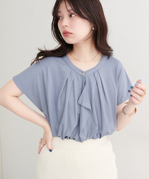 【2025AW natural couture】 <sherbet line> Lightweight and perfect to wear on hot summer days! 【暑い日も安心!接触冷感アイテム】 WEB限定カラー:ラベンダー/ブルー ■Design 暑い季節も快適に過ごせる、接触冷感素材を使用したブラウス。 レーヨン混のしなやかな生地が、上品なドレープを生み出し、オフィスから普段使いまで、幅広いシーンで活躍します。 ゆったりとしたシルエットで、ストレスフリーな着心地。 ■Styling テーパードパンツやジャケットを合わせて、オフィスにぴったりの きちんとスタイルに。足元はパンプスを合わせて、上品さをプラス。 フレアスカートを合わせて、フェミニンなデートスタイルにも。 シンプルなデザインなのでバッグで華やかさをプラスしたり、ゴールドやシルバーのアクセサリーを合わせるのもおすすめです。 ■Fabric 接触冷感素材使用で、暑い日でもひんやり快適な着心地。 =============== お手入れ方法:マシンウォッシャブル 透け感:アイボリーあり 裏地:なし 伸縮性:ややあり 光沢感:なし 生地感 :滑らかな生地感 =============== ※接触冷感は永久的なものではなくご使用中の摩擦や汚れの付着または洗濯を繰り返すことにより効果が低下します。 ※着用、お取り扱いの際は、商品に付いている品質表示とアテンションタグを必ずご確認ください。 【お気に入り登録でお得な情報がいっぱい】 ・「商品のお気に入り登録」で再入荷通知や、ラスト1点の通知、セール通知をいち早く受け取ることができます。 ・「ブランドのお気に入り登録」で新商品や再入荷など、お得な情報を受け取ることができます! ※店舗の入荷時期は商品によって異なります。 店頭の在庫状況につきましては各店舗にてお問い合わせください。 ※撮影時の光の関係で、画面上の画像と実際のお色とでは若干の色差が生じる可能性がございます。 また、ご覧いただいているモニター画面や、お使いのブラウザによっても、お色の違いがございますことをあらかじめご了承くださいませ。 20250801 2025AW_natu 25AW