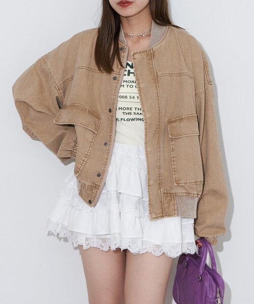 1枚で決まる存在感たっぷりなフライトジャケット▼ポイントヴィンテージライクな風合いが魅力のデニムフライトジャケット。無骨になりすぎない丸みのあるシルエットと、大きめポケットやリブのディテールがアクセントに。ピンク・ブルー・ベージュの3色展開で、カラーによって印象がガラッと変わるのもポイント。ゆったりシルエットなので、中にスウェットや厚手のインナーも仕込めてロングシーズン活躍します。▼スタイリングワイドデニムと合わせて、思いっきりメンズライクに振り切っても◎ミニスカやワンピに合わせて、あえて甘さMIXな着こなしもおすすめ。---------------------------------------------------透け感:なし伸縮性:あり(リブ部分)裏地:なし光沢:なし---------------------------------------------------家庭洗濯:40℃限度/洗濯機[弱い]タンブル乾燥:不可アイロン:中温150℃まで可クリーニング:ドライクリーニング不可、非常に弱い処理によるウェットクリーニング可・洗濯の際は、他の物と一緒に洗わないで下さい。・汗や雨等に濡れたり、過度の摩擦を受けると、ベルトやバッグ、淡色の衣類に色移りすることがあります。---------------------------------------------------【ANTI WARP /アンチワープ】クラシックなデニムの概念を再構築し『現代』を取り入れることで常に進化を追求するブランド。ただのデニムではなく、自己表現の一部。日々のスタイルに新しい風を吹き込む、あなたのワードローブの主役を提案。~2025SSより始動~---------------------------------------------------※着用、お取り扱いの際は、商品についている品質表示とアテンションタグを必ずご確認下さい。※画像の商品はサンプルです。実際の商品と仕様、加工、サイズが若干異なる場合がございます。※可能な限り実物に近いカラーにて掲載していますが、撮影環境やモニター環境などにより製品と画像のカラーがやや異なって見える場合もございます。予めご了承ください。【お買いものをよりお楽しみいただく為に!!】▼商品のお気に入り登録(ハートマークをクリック)お気に入りアイテムの完売カラーの再入荷通知や、ラスト1点の通知、セールの通知も受け取ることができます。▼ブランドのお気に入り登録新商品や再入荷、クーポン配布などのお得な情報を受け取ることができます。