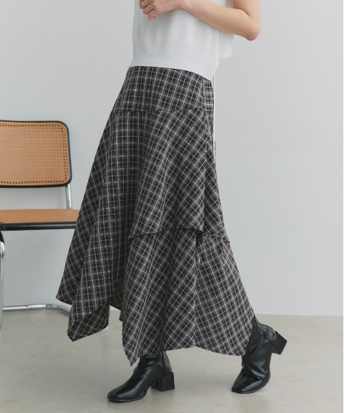 歩く度に映えるこなれチェックスカート≪定番のチェック柄に一癖プラス≫クラシカルなチェック柄とアシンメトリーなイレヘムデザインが目を引く1着。■point・ウエストは後ろゴムできちんと感はそのままにストレスフリーな着用感・異なる長さの裾を組み合わせたイレヘムデザイン・安心の裏地付き・サイドファスナーで着脱楽ちん・短すぎない丈感でコーデに取り入れやすい■detailイレヘムの立体感のあるシルエットが女性らしさと軽やかさを演出。トラッドな印象のチェック柄×動きのあるシルエットでモードな印象も。1枚で着映えし、ロングシーズン着用できる万能スカートです。■fabricナチュラルな風合いの生地感………………………………伸縮性:なし透け感:なし裏地:ありポケット:なし………………………………■混率【表地】ポリエステル 100%【裏地】ポリエステル 100%原産国:中国■coordinate1枚で着用するのはもちろん、デニムなどをレイヤードすると今っぽく仕上がります。ボリュームのあるスカートなので、トップスはコンパクトなものを合わせるとスタイルアップ効果もTシャツやスウェットなどラフなアイテムを合わせてカジュアルダウンさせるのもおススメです。■SNS情報@adthie.official【公式】Instagramでも新着アイテム&トレンドアイテムを毎日発信中!!洗濯表記【洗濯処理】水温40℃を限度に、手洗いができます【漂白処理】漂白できません【タンブル乾燥】タンブル乾燥禁止です【自然乾燥】日陰で、吊り干しします【アイロン仕上げ】120℃を限度に、アイロンが使えます【ドライクリーニング】石油系溶剤又はデカメチルペンタシクロシロキサンによる、弱いドライクリーニングができます【ウエットクリーニング】非常に弱い操作による、ウエットクリーニングができます【洗濯表記説明文】蛍光増白剤禁止あて布使用Attention【お取り扱い上のご注意】この製品は非常にデリケートな生地を使用しております。そのため、激しい運動や強度な力が加われば縫い目が開いたり、目寄れ(織り糸が滑り目が開く)する性質があります。またベルトやバッグ、周囲の壁など、表面の粗いものとの摩擦による引っかかりにもご注意下さい。・濃色のものは染料の性質上、擦られると色移りすることがありますのでご注意下さい。・汗や雨で湿った場合、着用中の摩擦により他の物に色が移る場合があります。
