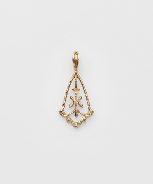 繊細な透かし模様が、肌の上でやさしく輝くK5ゴールドのネックレスチャーム。 フランスの手編みレース(無形文化遺産)から着想を得たデザインは、クラフト感と品のある華やかさを兼ね備え、身に着ける方の美しさを引き立てます。 すっきりとした縦長のシルエットと、程よいボリューム感で、デイリーにも取り入れやすいバランスの良さが魅力。 色石ジュエリーとのレイヤードも映え、さりげなく添えられたダイヤモンドが、光を受けて繊細にきらめきます。 ※天然石や天然素材を使用しているものは、サイズ・色味・風合いの違いや、若干の傷、内包物の有無などに個体差があります。予めご了承ください。