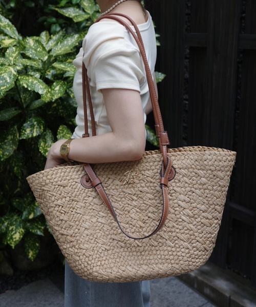 肩掛けと手持ちの2wayで楽しめる夏らしさ満点のカゴバッグが登場。 パッと目を惹く大き目サイズで 夏のコーディネートのポイントになるデザイン。 JUMELLEオリジナルバッジ付きで高級感もたっぷり。 デイリー使いにはもちろん、 海やお祭りなど夏のイベントにもぴったりのアイテムです。 [ select item ] JUMELLEらしい、ガーリーカジュアルなスタイルに ぴったりなアイテムを厳選してセレクト。 使い心地やシルエットまでcheckし、セレクトしています。