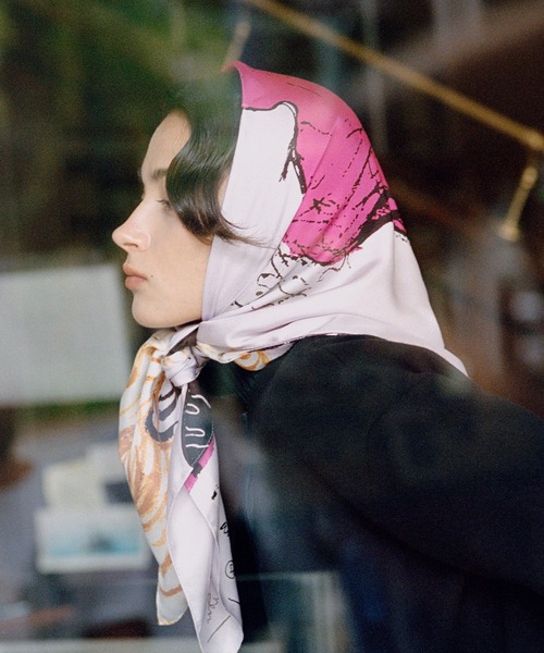 ロートレックの名作リトグラフを大胆にアレンジした、アートなスカーフコレクション。シルク100%の上質な光沢と、華やかな柄がコーデを格上げする大判スカーフ【デザイン・シルエット】 1800年代に活躍したフランスの画家、ロートレック(Henri de Toulouse-Lautrec)のリトグラフを、大胆な構図でコラージュしたスカーフパターン。躍動感あふれる当時のムードを纏った、アーティスティックなスカーフコレクションです。 【スタイリング】 シャツに合わせたビスチェ巻きや、パンツに重ねるスカート巻きなど、シンプルになりがちなサマーコーデを華やかにアレンジできる一枚。温度調節のしやすいシルク100%素材で、オールシーズン活躍します。 【イラスト】 ・ブルー(44):踊り子エグランティーヌ嬢一座のロンドン公演のために制作されたポスターをコラージュした柄。リズミカルな足のシルエットと、踊るような線描が華やかな舞台を彷彿とさせます。 ・ピンク(63):女優マルセル・ランディールに魅せられて制作された連作の中でも、最も華やかで洗練されたリトグラフを、イギリス犬のスケッチとコラージュした柄。 【素材】 上品な光沢感を持つシルク100%素材です。 ※画像の商品はサンプルです。実際の商品と仕様、加工、サイズが異なる場合がございます。 ※撮影場所やライティング、お使いのモニター環境によって色の見え方が異なる場合がございます。 ※商品のカラーは画像の色味をご参照ください。動画は仕様説明のため、色味が実物と異なる場合がございます。