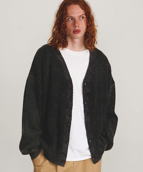 Revo.(レヴォ) ◆2025-26AW Collection◆ ユーズドライクな表情がこなれ感のあるルーズニットカーディガン ふっくらとしたボリューム感が魅力のワッフル編みニット素材のカーディガン。パウダー加工を施し古着ライクな色褪せ感がポイントです。凹凸のあるワッフル素材は肌を包み込むようなふわっとした柔らかな生地感と、スウェットのようなライトな着心地が魅力。身幅と肩幅に余裕を持たせた程よくゆったりとしたルーズシルエットで、トレンドライクな着こなしが楽しめます。一枚でメインアイテムとして、ブルゾンやコートなどのインナー使いとしても◎。ブラック、グレージュ、カーキ、ネイビー、レッドの5色展開。定番からファッションのポイントになる差し色まで揃えた豊富なカラバリが◎。スラックス、革靴などと合わせてアダルトな雰囲気に、ダメージデニムパンツやカーゴパンツ、サイドラインパンツなどと合わせればトレンド感溢れるストリートコーデに仕上がります。ワッペンや缶バッジ、刺繍等で自由にカスタムしてオリジナルに仕上げるのも◎。シンプルなデザインでスタイルを問わずデイリーに活躍してくれる万能なベーシックアイテムです。 ▶今季注目のフェード加工を施したニットカーディガン ▶凹凸のあるワッフル編みのニット素材で柔らかな着心地 ▶インナーのアレンジも広がるVネックデザイン ▶程良いリラックスフィットシルエット ▶ダボっとしたルーズ感がこなれた雰囲気を演出 ▶シンプルなデザインがボトムスを選ばず着回し力抜群 ▶女性の方でも着用して頂けるユニセックスデザイン ▶キレイめにもカジュアルにも落とし込める1枚 ▶旬なグランジ系ストリートスタイルにも◎ ------------------------------------------------- 生地の厚さ:普通 裏地:なし 透け感:なし 伸縮性:あり ポケット:なし ------------------------------------------------- COORDINATE デニムやチノパンを合わせたカジュアルスタイルから、パラシュートワイドパンツやトラックパンツと合わせたストリートスタイル、フレアパンツやスラックスなどと組み合わせた現代風なモードスタイルまで幅広く◎。インナーにロンTやシャツを合わせたレイヤードスタイルや、きれいめなテーラードジャケットやトレンチコートと合わせたミックススタイルもGOOD。一枚でメインアイテムとして、真冬にはMA-1、スタジャン、ピーコート、ダッフルコート、チェスターコート、モッズコート、ダウンベスト、ダウンジャケットなどのインナー使いとしてロングシーズン重宝します。足元はスニーカーは勿論の事、ローファー、アンクルブーツ、レザーシューズなどの革靴で上品な雰囲気の合わせもおすすめです。スタイルのアクセントとして、スマホショルダーやボディバッグ、巾着バッグ、バケットハット、サングラスなどの小物使いもGOOD。 Revo. 音楽、古着、ワーク、ミリタリー etc ... 様々なカルチャーやライフスタイルからインスパイアされたアイデアを、素材の風合いを活かしたベーシックアイテムへとアウトプット。シンプルな中にも「匂い」を感じるナチュラルスタイルを提案します。 ================================= ◆気になるアイテムは≪お気に入り登録≫がオススメ! 入荷情報やクーポン、セール情報のお知らせを受け取ることができます。 ================================= ※撮影画像はサンプル品を使用しているため、実際の商品と仕様、加工、サイズが若干異なる場合がございます。また、可能な限り実物に近いカラーにて掲載していますが、使用しているパソコンのモニター設定や、携帯電話のメーカー・機種により実際のカラーと異なって見える場合がございます。予めご了承ください。 ※文章・画像等の内容の転載及び複製等は固くお断りします。
