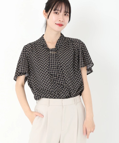 *レトロジオメトリックヴィンテージライクな雰囲気が魅力の、幾何学柄プリントブラウス。 レトロ感漂うジオメトリック柄は、クラシカルでありながら、今っぽさも兼ね備えたデザイン。柔らかく軽やかな素材感で、さらりとした着心地もうれしいポイント。 一枚で主役になる存在感がありながら、落ち着いたカラーリングで着まわしやすく、きれいめなスカートにも、デニムでカジュアルダウンしても品良く決まります。 洗濯:洗濯機使用可能(ネット使用) ●おすすめシーン 入学式(入園式)、卒業式(卒園式)、演奏会、発表会などの学校行事での母親・ママスーツとしてなど。 20代・30代・40代・50代まで幅広いシーンで着回せます。 《お気に入り登録》はお得がいっぱい! 「商品」のお気に入り登録で、再入荷、ラスト1点、セールなどお得な通知を受け取ることができます。 「ブランド」のお気に入り登録で、新商品や再入荷などいち早くブランドの情報を受け取ることができます。 是非、この機会にご登録くださいませ。