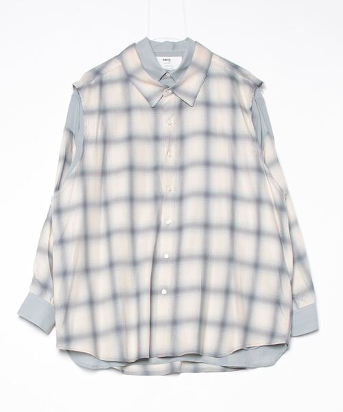 デザインは無地とオンブレチェック柄を掛け合わせたレイヤードシャツ。レイヤードの肩先にはスナップボタンを付けベストとしても着脱可能な3WAYデザイン。ベスト着脱後も単体での着用可能です。生地は短繊維と長繊維が均一に混繊され毛羽立ちを抑えた美しく強い糸構造でウールの温かみもある上質な素材を使用。ゆったりと羽織れるデザインのシャツです。2025 A/W “AMULET”ブランドの立ち上げから10周年を記念する2025年秋冬コレクション「AMULET(お守り・魔除け)」をテーマにしています。amok /アモクDesigner : 大嶋 祐輝 氏Production Area : Japanamok [アモク]は、デザイナー 大嶋祐輝(YUKI OSHIMA)が2015年に設立。「古き良きものを壊し、新しい技術などを用いて、人間の奥底の感情に響くような洋服をデザイン」がコンセプト。【お買いものをお楽しみいただく為に】▼商品のお気に入り登録完売カラーの再入荷通知や、ラスト1点の通知、セールの通知も受け取ることができます。▼ブランドのお気に入り登録新商品や再入荷など、いち早くブランドのお得な情報を受け取ることができます。