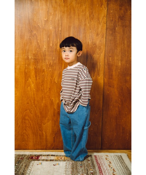人気のジーンズがリストック。 大人顔負けのワイドなシルエットにハンマーループを付けて、ワークの要素をプラス。 ヴィンテージ風の色落ち加減も魅力です。 ウエストはゴムの仕様でストレスフリーの履き心地です。※以前より販売しているブルー、ブラックより少しウエストが小さめです。 必ずサイズ表でご確認の上お買い上げください。