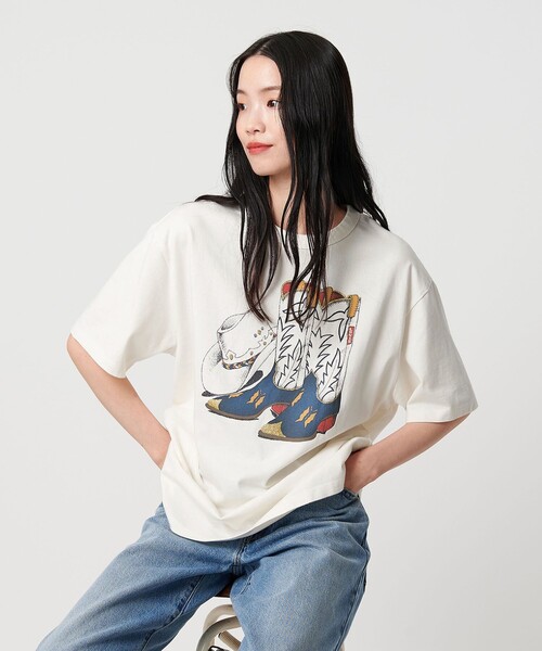 ■国内EXCLUSIVEモデル■クラシックなウエスタンムードのプリントTシャツ■デザインボクシーシルエットのリラックス感あるプリントTシャツ。ウエスタンハットとブーツのグラフィックは昔のポスターからインスパイアされたもので、<Levi's>の歴史とヴィンテージテイストが感じられるデザイン。綿100%のやわらかな素材で、サマーシーズンにぴったりのさらりと一枚で様になるアイテム。■コーディネートデニムやスニーカーに合わせた王道カジュアルスタイル以外にも、色使いの効いたデザインは羽織のインナーとしても存在感を発揮します。<Levi's(リーバイス)><Levi's>は1853年に設立され、ジーンズの先駆者として知られるブランドです。ブランドの名前となっている創業者リーバイ・ストラウスは金鉱採掘者向けに頑丈なキャンバス地の作業着を提供し、これがジーンズの始まりとなりました。その後、素材はデニムに変更され、色もインディゴ・ブルーが採用されました。1960年代には、ジーンズの世界的大ブームが起こり、若者のファッションとして受け入れられ、現在も世界中で人気を博しています。【注意事項】※(R)のみが表記されたレッドタブは、LEVI'S(R)の文字が含まれるレッドタブと同様に製品不具合ではありません。サイズや商品不備によるご交換の際も、レッドタブのロゴデザインをお選びいただくことはできません。※商品に「取り扱い上の注意書き」、「洗濯表示」がございます場合は、使用前に必ずご確認ください。※商品画像は、光の当たり具合やパソコンなどの閲覧環境により、実際の色味と異なって見える場合がございます。あらかじめご了承ください。※商品の色味の目安は、商品単体の画像をご参照ください。店舗へお問い合わせの際は、全国のBEAUTY&YOUTH各店舗まで下記の品名/品番をお申し付けください。品名:BL LEVIS COWBOY TEE EX f 品番:16174000005