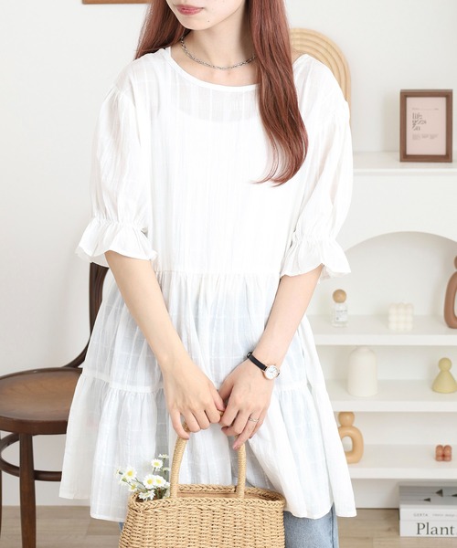 ふんわり広がるティアード×バックレースアップの華やぎチュニック ■point ティアードデザインのふんわりとしたシルエットが華やかさを演出するチュニック。 甘すぎず品のあるギャザー使いで、フェミニンスタイルにこなれた印象をプラス。 バックスタイルのレースアップが女性らしいアクセントとなり、360度可愛いが叶います。 ■fabric ・綿のナチュラルでやさしい肌触り ・通気性に優れており、春〜秋に快適に着用可能 ・軽さと柔らかさが魅力 ■detail ・バックレースアップで後ろ姿まで抜かりなくデザイン ・ギャザーたっぷりのティアード切替で女性らしさを際立たせる ・ゆとりのある袖口で動きやすさと抜け感を両立 ・オフホワイトの1カラー展開で清潔感ある印象に ■silhouette ・ゆるやかなAラインで体型を選ばず着こなせる ・ヒップラインまでしっかりとカバーする丈感 ・ほどよくボリュームがあり、1枚で主役になる存在感 ■coordinate 華やかなティアードシルエットが主役になるレースアップティアードチュニックは、1枚で“映える”スタイルが完成する万能トップス。 ビスチェと重ねて、韓国っぽレイヤードスタイルに振っても◎。 スキニー合わせでメリハリを出しても、ノースリーブトップスとレイヤードして甘さを引き算した大人フェミニンも可能。 バッグはナップサックや巾着バッグでカジュアル感をプラス。 足元にはスライドサンダルやリカバリーサンダルを合わせて、アクティブな空気を演出。 バブーシュカやツイード素材の小物を添えれば、季節感とこなれ感の両方を押さえた高感度スタイルに。 <OKシーン> 街歩き / カフェ / デート / 女子会 / ピクニック / 公園 / 夏イベント / 旅行 / お出かけ / 日常使い ■color オフホワイト 【お買いものをお楽しみいただく為の方法】 ★商品のお気に入り登録★ ・完売カラーの再入荷通知やラスト1点の通知、セールの通知も受け取ることができます。 ★ブランドのお気に入り登録★ ・新商品や再入荷など、いち早くブランドのお得な情報を受け取ることができます!