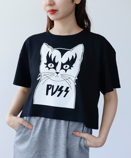 人気のTシャツに新柄が登場!インパクトあるロックな猫ちゃんが愛らしくもコーデのポイントに♪インポートらしい他には無いユーモアたっぷりのデザインを楽しんで♡ガーリーな印象のクロップドTシャツでスカートスタイルにピッタリの着丈です。袖口はゆったりしていてとってもリラクシー!プリントがキャッチーで春夏以外にもジャケットやカーデのインナーにピッタリでロングシーズン着て頂けます♪あえてのLサイズでゆったりと。--------------------------------------透け感:なし伸縮性:ありケア方法:洗濯機可※お洗濯の際は洗濯表示を必ずご確認ください。--------------------------------------