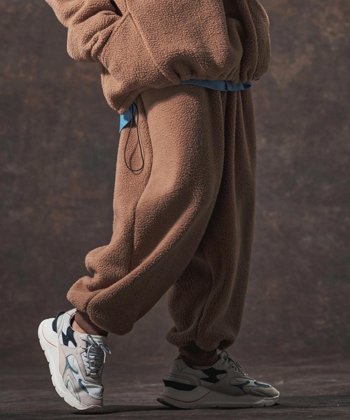 175cm B83cm-W66cm-H87cmのモデルがMサイズを着用。厚みのあるボア生地を使用したボアリブパンツ。ワタリ幅などだいぶ広めのバルーンシルエット。裾はリブでウエストはゴム仕様のイージーパンツ。同素材のパーカーJIH-R1138とセットアップコーディネートも可能のアイテムです。※着用画像と商品単体画像で色が異なる場合がございます。※商品単体画像を実物により近づけております。
