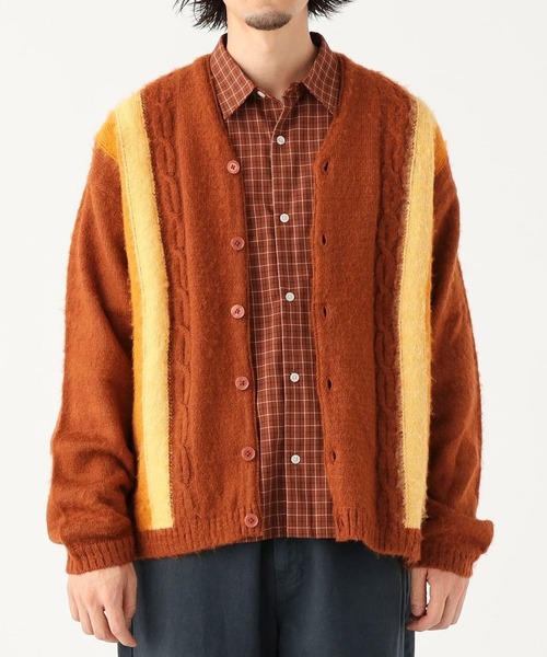 シャギー加工とヴィンテージ柄で魅せる、レトロな一枚 ・モヘア調アクリル糸のダブルジャカード編みで度目を詰めてしっかりした厚さを出したシャギーカーディガン ・製品にシャギー加工をする事で表面に毛足を立たせて古着のような風合いを再現 ・度目を詰めたダブルジャカードでありながら、軽さと柔らかさが特徴 ・60sや70sのビンテージから着想を得た柄や、ありそうでないドット柄など4柄で展開 ※商品の色味は白背景商品単体で撮影した画像をご参照ください。 ※着用画像は光の当たり具合やパソコンなどの閲覧環境によって、実際の色味と異なって見える場合がございます。予めご了承ください。 TOWN CRAFT / タウンクラフト TOWN CRAFT は、1927 年にJ.C.Pennyの派生ブランドとして誕生しました。1950年~1970年のTOWN CRAFTは、当時のワークブランドと違い新しい素材や装飾、デザイン性を重視し大量生産の古き良きアメリカを象徴しています。古着から素晴らしさ、奥深さを学び、そのデザインソースを基により快適で着心地のよい洋服を現代にプレビューし展開しています。