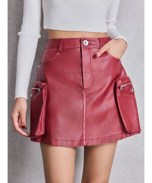 サイドのポケットデザインがかっこいい◎■商品コメント 高級感のあるマットな質感で、リアルレザーに近い見た目ながらも加工をいれedgeを効かせたデザインに。 サイドのポケットやポケットがデザインと機能性を両立。 ミニの着丈でもインナーショーツ付きで安心な仕様になっています。 後ろウエスト部分もゴムギャザーになっており しっかりフィットする着用感も◎↓セットアップアイテムはこちら品番:072550202901 URBAN EDGEフェイクレザーユーティリティーブルゾン ■コーデ セットアップは勿論、単体で着用の場合は、ブーツ+ニットアイテム合わせで秋冬感をプラスしてください。 【 お買いものにおすすめの便利機能! 】♥商品のお気に入り登録完売カラーの再入荷時や、ラスト1点の時、セール開始時にお知らせします。♥ブランドのお気に入り登録新商品や再入荷、セール情報など、いち早くブランドのお得な情報を受け取ることができます。ぜひご活用ください! ※着用画像はフラッシュの加減で実際の製品と色味等が異なる場合がございますので、生地のズームアップ画像をご確認ください。 ※ご利用の端末画面の設定により実際の商品と色味が異なる場合がございます。