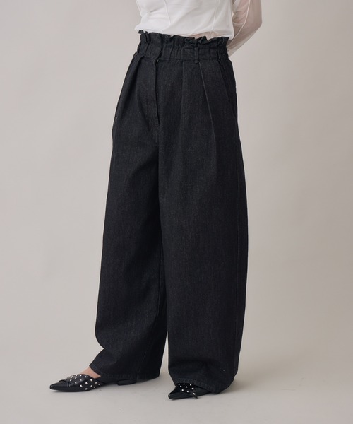 コーデに迷わない、最強の着回しパンツ<POINT>トップスをインしたスタイルが美しく決まる、幅広のウエストデザインが目を惹く一本。美ワイドシルエット。ご自宅で手洗い可能なイージーケア。【デザイン・シルエット】フロントはジップとスナップボタンですっきり見せながら、太めのウエストバンドがキュッとくびれを強調し、抜群のスタイルアップ効果を発揮。フロントに施された深めのタックが、腰回りに絶妙なゆとりと立体感を生み出し、気になるレッグラインをまるごとカバー。リラックスした履き心地と、すっきりとした美脚見えを両立した理想のワイドシルエット。ベルトループも備えているため、お気に入りのベルトでウエストマークすれば、違った表情の着こなしをお楽しみいただけます。【素材感】デニム特有の硬さやごわつきを抑え、しなやかで優しい肌触りを追求した上質なコットン100%の生地を厳選。吸湿性・通気性にも優れたコットン素材は、汗ばむ季節もさらりと快適に、秋冬はニットタイツなどと重ねて、オールシーズン活躍。【カラー】ブラック ネイビー 2色展開【スタイリング】カジュアルなロゴTシャツやスニーカーと合わせれば、こなれ感のある休日のリラックススタイルに。繊細なレースのブラウスや、きれい色のサマーニットを合わせれば、女性らしさが引き立つおでかけコーデが即完成。裏地:なし光沢:なし伸縮性:なし透け感:なし生地の厚さ:普通ポケット:あり【cloche】”可愛くお洒落に”に応える、よりリアルな大人可愛いアイテムを提案します。※照明の都合上、多少の色ブレが生じてしまう可能性がございますので、予めご了承くださいますようお願い致します。---------------------------------------------------●お気に入り登録でお得情報を手に入れよう!「商品のお気に入り登録」をすると、再入荷通知や、ラスト1点の通知、セールの通知など、お得情報が届きます。また、マイページでいつでも確認が可能になります。「ブランドのお気に入り登録」をすると、新商品や再入荷、などいち早くブランドの最新情報をお届けします。ぜひ、ご利用ください。----------------------------------------------------