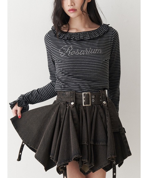 【ポイント】 キャッチーなフロントのラインストーンロゴがトレンド感MAX! コンパクトなサイズながら女性らしいボートネックとスリーブに施したフリルとバックスタイルのリボンデザインが華奢見え! 伸縮性のあるカットソーを使用しているので着用感もバッチリです。 細ピッチの微配色ボーダーとベビーピンクが今っぽいスタイリングに仕上げてくれます。 【スタイリング】 コーディネートの主役になるjouetieらしいアイテムです。 ガーリーな印象のコンパクトトップスにはトレンドのミニバルーンスカート合わせがかわいい! あえてスウェットパンツやワイドデニムなどカジュアルなボトムスを合わせるのもおすすめです。 ※天幅が5cm広くなります。 ※ロゴ位置が1.5cm下がります。 ※着用画像はフラッシュの加減で実際の製品と色味等が異なる場合がございますので、生地のズームアップ画像をご確認ください。 ※ご利用の端末画面の設定により実際の商品と色味が異なる場合がございます。 ※正しいサイズはアイテムサイズ表をご確認ください。 ※商品のお取り扱いについては、脇についている洗濯ネーム類をご確認下さい。 【jouetie ZOZOTOWN お買い物ガイド】▼商品をお気に入り登録!♡をクリック!完売商品の再入荷やラスト1点の通知、セール開始時にお知らせ!▼"jouetie(ジュエティ)"をお気に入りブランドに登録!新商品や再入荷など、ブランド最新情報をいち早くお知らせ!