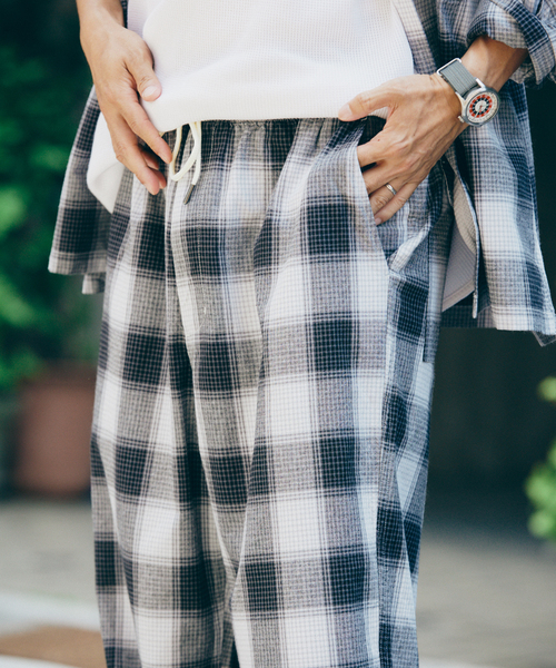 FIVE BROTHER*relume OMBRE PT ブランドのDNAを継承する、リラックス感あふれる上質な肌触りを実現した別注オンブレチェックイージーパンツが登場。 FIVE BROTHERの長きにわたる歴史の中で、ブランドの代名詞とも言える「ネルシャツ」からインスパイアされた、アイコニックなオンブレチェック柄を大胆に採用。 素材には、吸水性・吸湿性に優れたレーヨンにコットンをブレンドした、こだわり抜いた生地を選定しました。 レーヨン100%ならではのしっとりとした柔らかさはそのままに、シワになりにくく、より快適な着心地を実現。 デイリーユースはもちろん、リラックスしたい特別な時間にもぴったりの一枚です。 ウエストはゴムとスピンドル仕様で、ストレスフリーな着用感とサイズ調節の容易さが魅力。絶妙なリラックス感のあるシルエットは、どんなスタイルにも自然と馴染み、幅広いシーンで活躍します。 さらに、バックポケットにはブランドのルーツであるワークウェアのディテールを忠実に再現したフラップポケットを採用。FIVE BROTHERならではのアイデンティティと、relumeによるモダンなエッセンスが融合した、他にはない特別なパンツに仕上がりました。 ※同素材のFIVE BROTHER /ファイブブラザー 別注セットアップもおすすめです! 品番:25050464960030 商品名:FIVE BROTHER /ファイブブラザー 別注 オンブレチェック シャツ 【FIVE BROTHER / ファイブブラザー】 1890年、アメリカ・ニューヨークで創業した「FIVE BROTHER」。創業当初から、着る人のことを第一に考えた着心地の良さと、タフな耐久性を両立させたワークウェアは、洗練されたカジュアルスタイルとして、当時の労働者たちに広く愛されました。 1世紀以上にわたる歴史に裏打ちされた確かな品質と、時代に流されない普遍的なデザインは、今なお多くのアメカジファンを魅了し続けています。2008年の復活以降も、ブランドの持つヴィンテージライクなディテールを大切にしながら、現代のシルエットへとアップデート。着込むほどに味わい深まる、こだわりのワークウェアとして、多くのファンを魅了しています。 ********************** 透け感:なし 裏地:なし 伸縮性:なし 光沢感:なし 生地の厚さ:普通 ********************** 【スタッフ着用コメント】 《スタッフH》 身長:173cm/体重:62kg/体型:中肉中背/普段サイズ:M/着用サイズ:L サイズ感:程良くゆったりとしたシルエットです。 素材感:滑らかな肌触りでドライタッチ。 着心地:リラックス感のある履き心地。 ********************** 《画像についてのご注意》 ※照明の関係により、実際よりも色味が違って見える場合があります。 またパソコン・スマートフォンなどの環境により、若干製品と画像のカラーが異なる場合もございます。 ※商品の色味は、商品アップ画像をご参照ください。 《商品のお気に入り登録について》 「カートに入れる」または「予約する」右側のハートマークを押していただくと、 再入荷、残り1点、セールなどの通知を受け取ることが出来ます。 本体:手洗い可能