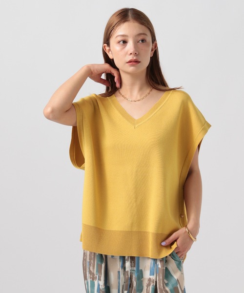 高級感のある素材感で、キレイ目にも仕上がる万能ニットベスト ーーー ★おすすめポイント★ [1]オールシーズン着用可能 [2]ミラノリブ素材で高級感のある仕上がり [3]ゆったりめのシルエット [4]気になるヒップもカバー ーーー [fabric] さらっとした素材を使用しているためオールシーズン着用可能。 ミラノリブで適度にハリがあり高級感ある編地に仕上がっている素材感。 [design] 全体的にゆったりとしたシルエットで、ヒップをカバーしつつ様々なレイヤードが楽しめる着回しの利く1枚。 サイドのボタンがアクセントに。 [styling] 暖かい時期はシャツやTシャツ、タンクトップ、少し冷えてきたころにはタートルネックなどとレイヤードしていただくのがおすすめ。 ボトムはタイトにまとめるとバランス◎ ------------------------------------- ≪お買い物をよりお楽しみいただくために≫ ◆商品のお気に入り登録(ハートマークをクリック) 完売カラーの再入荷通知や、完売間近の通知、セールの通知も受けることができます。 ◆ブランドのお気に入り登録 新商品や再入荷など、いち早くブランドのお得な情報を受け取ることができます。 -------------------------------------