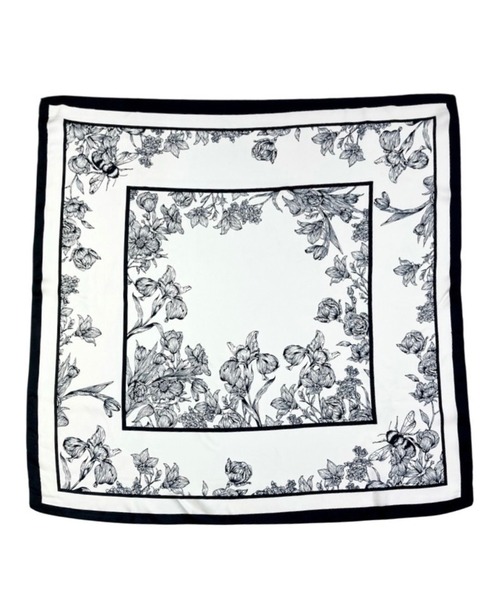 季節感あふれる新作スカーフでコーデをアップデート! 【Design/Styling】 ・秋の装いに季節感と華やかさをプラスしてくれる大判スカーフ。 ・首元に巻いてアクセントにするのはもちろん、ヘアアレンジやバッグに結ぶのもおすすめ◎ ・クラシックな秋スタイルにも映えるアイテムです。 ・柄が異なるレッド、ブラックの2色展開です。 F:縦70cm/横70cm
