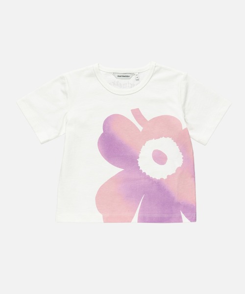 【テキスタイルデザイン:Maija Isola(マイヤ・イソラ)】 Unikko(ウニッコ):花グラデーションカラーのUnikko柄を配したキャッチーなTシャツ。後ろ首元のロゴも、さりげない可愛さをプラス。さらりとコーディネートでき、毎日の着こなしに活躍する一枚です。※品質表示は、Marimekko社の付けた洗濯表示を日本国内の基準に合わせ付け替えております。本国のタグはカットされておりますので、予めご了承ください。※断裁により商品ひとつずつの柄の出かたが異なるため、表示画像のディテールと多少異なるデザインのものが届く場合がございます。予めご了承ください。<marimekko キッズウエアサイズチャート>62サイズ 3ヵ月 68サイズ 6ヵ月 80サイズ 9ヵ月~12ヵ月 92サイズ 18ヵ月~2歳 104サイズ 4歳 116サイズ 5~6歳 128サイズ 7~8歳