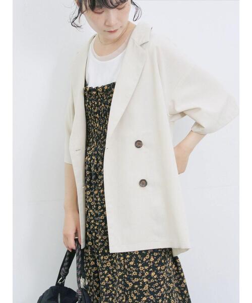 ダブルボタンがクラシカルな印象を演出するシャツジャケット。 ハーフスリーブでシーズンらしい爽やかなムードを漂わせます。 裏地のないタイプになっていて、季節の変わり目などにも重宝する1着。 きちんと見えしつつ程よいカジュアルさもあるデザインで、幅広いスタイリングにも活躍してくれるアイテムです。 ※商品画像は、撮影環境やお客様のご利用のPC・スマートフォンのモニター環境などにより実物と色味に差異がある場合がございます。