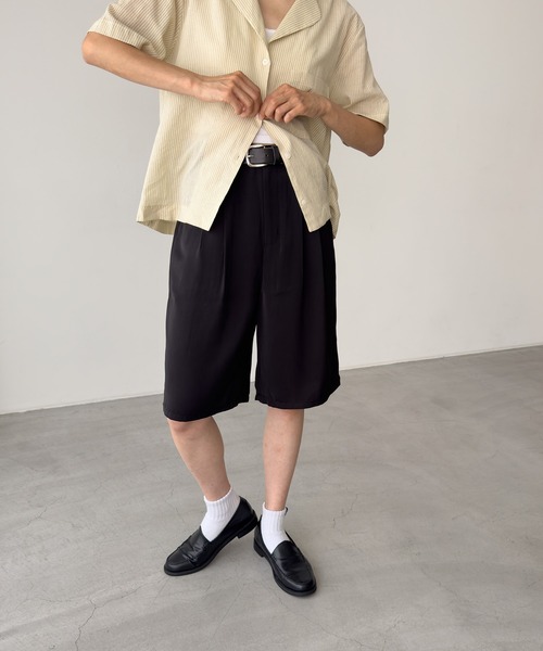 デザイン ハーフパンツのカジュアルさにサテン素材の上品さを掛け合わせたエフォートレスなバランスが魅力。 落ち感のある生地で動くだびに自然なドレープが生まれ、大人の抜け感を演出します。 素材 ポリエステルサテンの光沢のある表面となめらかな質感が魅力。 コーディネート Tシャツやタンクトップにスニーカーを合わせてカジュアルにも、 ブラウスやジャケットにミニマルなフラットシューズやヒールを合わせてモードにも。 シンプルなアイテムを合わせるだけでどこか都会的な雰囲気に仕上がります。 【マルチサイズとは】 豊富なサイズ展開のため、 「骨格ストレート/骨格ウェーブ/骨格ナチュラル」など様々な体型の方も、 自分に合った1枚が見つかる新しい洋服の買い方です。 「低身長~高身長」「やせ型~ぽっちゃり」など小さいサイズから大きいサイズまで、最大56サイズご用意しています。 定番アイテムから、ビッグシルエットなどのトレンドアイテムまで幅広く展開中! ※マルチサイズは、ZOZOTOWNのみでのお取り扱いになります。 ※サンプル品で撮影しているため、ボタンやファスナーなど一部の仕様が若干異なる場合がございます。 【注意事項】 この商品はご注文を受けてから生産を行う受注生産商品のため、発送までにお時間をいただきます。 カート投入後の画面にて発送日の目安が表示されますのでご確認ください。