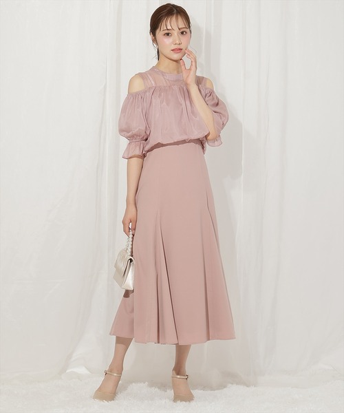 様々な着こなしを楽しめる、マルチウェイのビスチェ付きオケージョンドレス【Design】・キャンディスリーブとバックリボンがスウィート感をアップしてくれるセットワンピース。・オフショル風に着こなすビスチェは前後を入れ替えての着用も可能◎・ワンピースの首周りはシアー素材で仕上げ、ヘルシーな肌見せが叶います。・ノースリーブワンピース単体の着用でも上品に魅せてくれる、ソフトなマーメイドシルエットも魅力♪・フレアとマーメイド、両方のレディ感を味わえるアイテムです。・バックウエスト部分はシャーリング&ゴム仕様でサイズ感の調整が可能。・ワンピースは左脇ファスナー仕様、後ろは涙開きのボタン仕様。・ビスチェの肩紐はボタン留め仕様で、前後の向きを変えることができます。【Fabic】・ビスチェにはしなやかな質感のある生地を使用。・ご自宅でお手入れが出来るのも嬉しいポイント♪・ピンク、ブラックの2色展開となります。【Care】手洗い可能F:(00):【トップス】着丈27.5㎝~29.5㎝/袖丈29㎝/袖口巾23㎝/裾回り90㎝ 【ワンピース】着丈120㎝/身幅46㎝/肩幅35㎝/ウエスト72㎝/裾周り372㎝
