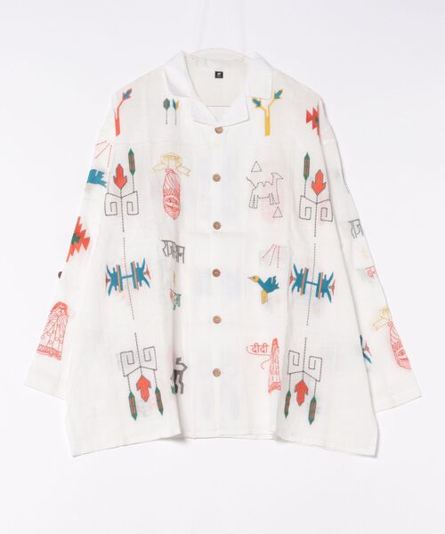 ◆◇ Inspired by RAJASTHAN RUG ◇◆ インド北西部ラジャスターン州の伝統ラグをイメージした柄を、カラフルな刺繍で豪華に表現。 通気性の良い柔らかなインド綿を使用したメンズ開襟シャツ。合わせ方次第でオールシーズン着回せます。 袖にタブが付いており、袖丈調節可能。 ユニセックスでご着用いただけます。 個性的で華やかなフォークロアスタイルに◎ ※こちらの商品は1点1点職人による手作りとなります。その為、形や色合い・模様など若干異なる場合がございます。あらかじめご了承ください。 ※屋外での撮影画像は、光の当たり具合で色味・カラーが違って見える場合がございます。商品のカラーは、スタジオ撮影の画像をご参照ください。 Amina Collection Co.,LTD.