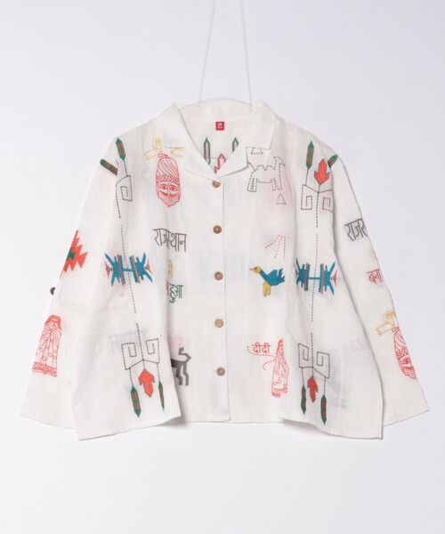 ◆◇ Inspired by RAJASTHAN RUG ◇◆ インド北西部ラジャスターン州の伝統ラグをイメージした柄を、カラフルな刺繍で豪華に表現。 通気性の良い柔らかなインド綿を使用した開襟シャツ。合わせ方次第でオールシーズン着回せます。 袖にタブが付いており、袖丈調節可能です。 個性的で華やかなフォークロアスタイルに◎ ※こちらの商品は1点1点職人による手作りとなります。その為、形や色合い・模様など若干異なる場合がございます。あらかじめご了承ください。 ※屋外での撮影画像は、光の当たり具合で色味・カラーが違って見える場合がございます。商品のカラーは、スタジオ撮影の画像をご参照ください。 Amina Collection Co.,LTD.