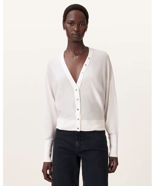 軽やかに重ねる。 Honor Vネックカーディガンは、ライトウェイトのメリノウールで作られ、リラックスフィット。オールセインツのロゴ入りメタルポッパーと、フィットした袖口がボリューム感を演出します。レイヤリングにも、メインアイテムにもぴったり。 ▼特徴、ポイント ポッパー開閉 ロングスリーブ Vネック ライトウェイト リラックス フィット モデル寸法: 身長: 5'11/180, バスト: 80cm/31.5cm, ヒップ: 90cm/35.5, ウエスト: 60cm/23.5 洗濯表示:裏返し手洗い RWS認定ウール (CU 870616)。責任あるウール規格(RWS)は、土地が管理され羊は責任を持って取り扱われる農場で調達されたウールであることを認証する業界ツールです。 ■リラックス: ゆったりとしており、体から離れて着るため、最大限の快適さと自由な動きを提供します。 ALLSAINTS(オールセインツ)について 1994年創業の英国発プレミアムコンテンポラリーブランド。イーストロンドンに本社を構え、メンズ・ウィメンズウェアをはじめとする商品のデザインからストアデザインまで、すべてを自社でコントロールしています。アイコンのバイカージャケットを筆頭に、バッグやシューズなどのレザーグッズ、独特なシルエットのドレス、素材にこだわったニットやシャツ、デニムなどの豊富なアイテムが揃います。現在、世界26か国に250店舗以上を展開中。