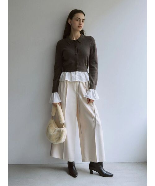 スポーティな配色ラインも綺麗めに落とし込んだ1着■デザインコメント柔らかく落ち感のある素材を使用したタックワイドパンツ。しっかりめに分量をとったワイドパンツも素材の落ち感で全く着太りすることなく上品でリラックスした雰囲気に着ていただけます。サイドのラインとウエストの細ベルトが配色でアクセントに。【修正コメント】下側ベルトループ少し大きくなります。■スタイリングポイント・合わせるトップスを選ばない着回し抜群パンツ・シアーやベロアトップスとのスタイリングもおすすめ・ピタリブニットと定番に合わせるのはもちろん、ルーズニットやオフショルと女性らしく着こなすのも◎---------------------------------------------------透け感:なし裏地:なし(透け防止のためアイボリーのみあり)生地の厚さ:薄手洗濯:-伸縮性:なしポケット:ありジップ:あり---------------------------------------------------【 ZOZOTOWNでお買い物を楽しむ便利機能 】♡商品のお気に入り登録完売カラーの再入荷時、ラスト1点の時、セール開始時にお知らせします。予約アイテムが入荷して通常販売になった時もお知らせしてくれます!その他お得な通知も盛りだくさんです。 ♡ブランドのお気に入り登録新商品や再入荷、セール情報など、いち早くブランドのお得な情報を受け取ることができます。ぜひご活用ください!