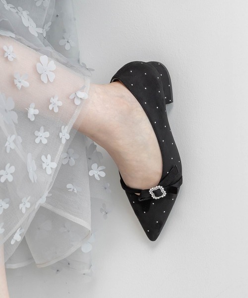 ◆2025AW新商品◆華奢なビジューパーツとリボンライクなベルトが上品なフラットパンプス。きらきらと輝く繊細なホットフィックスストーンを施し、エレガントな一足に仕上げました。POINT・きらきらと輝くホットフィックスストーンがコーディネートのアクセントに・女性らしいポインテッドトゥ・ビジューパーツ×リボンライクなベルトが上品なデザイン・歩きやすいフラットパンプス※ホットフィックスストーンは、強い衝撃や擦れなどにより、取れる可能性がございますので、歩行の際はご注意ください。スタッフの着用コメント-----------------------------スタッフA [普段のサイズ:Sサイズ/22.5cm]足長:22.5cm / 足幅:普通(E) / 甲高:高めサイズ選びのポイント:ゆったりめを選びます【試着サイズ】22.5cm/素足で着用【サイズ感】22.5cmでぴったりでした。【着用コメント】低めのヒールで安定感があります。-----------------------------スタッフZ [普段のサイズ:Mサイズ/23.5cm]足長:23.5cm / 足幅:普通(E) / 甲高:高めサイズ選びのポイント:ゆったりめを選びます【試着サイズ】23.5cm/素足で着用【サイズ感】23.5cmでぴったりでした。【着用コメント】かかとにホールド感があります。-----------------------------スタッフM [普段のサイズ:Lサイズ/24.0cm]足長:24cm / 足幅:狭め(C) / 甲高:高めサイズ選びのポイント:ゆったりめを選びます【試着サイズ】24cm/素足で着用【サイズ感】24cmでぴったりでした。【着用コメント】生地が柔らかく足当たりがいいです。-----------------------------スタッフI [普段のサイズ:LLサイズ/25cm]足長:25cm / 足幅:狭め(C) / 甲高:高めサイズ選びのポイント:甲が高いのでゆったりめを選びます【試着サイズ】25cm/素足で着用【サイズ感】25cmでぴったりでした。【着用コメント】つま先の締め付け感が少ないです。-----------------------------