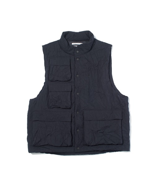 キャッチワッシャーの特殊加工により、シワ加工がモードっぽい印象をあたえる中綿ベスト。中綿には軽量かつ高い保温性を持つ"Primaloft(プリマロフト)"を使用し、暖かさと軽やかさを両立。表地にはポリエステル生地を櫛毛引き加工し、ウールに近い質感と上品な仕上がりを実現。 無数のユーティリティポケットが配置され、シークレットポケットやメタルボタンを採用したフロントデザインが特徴。ユニセックスで着用できるシンプルなデザインと、オーバーサイズ仕様によりアウターの上からも快適に着用可能。大きめのアームホールがコーディネートの幅を広げる。 ?素材の特徴 ?ポリエステル生地を櫛毛引き加工し、ウールに近い質感と柔らかな肌触りを実現。 ?「キャッチワッシャー」を採用し、半永久的なシワ加工が楽しめる独自のデザイン。 ?機能性 ?軽量で防寒性に優れたPrimaloftを中綿に使用。 ?豊富なユーティリティポケットで高い実用性を確保。 ?デザイン性 ?オーバーサイズのシルエットで、アウターの上からも快適に着用可能。 ?ユニセックスデザインが性別を問わずスタイリングを提案。