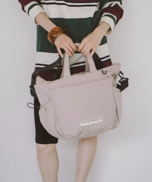 ■デザインポイント・パファー素材のショルダー・トート2wayバッグ・サイド/フロント/内ポケット付き・マチ幅がしっかりとありマザーズ、お仕事バッグなど多方面に活躍・A4サイズ、PC、500mlペットボトル収納可能・斜め掛けショルダーは取り外し可能・通勤・通学など普段使いから、お出かけの際にもおすすめ■カラー展開ブラックグレー■サイズ展開フリー■THEATRE PRODUCTS(シアタープロダクツ)「洋服があれば世界は劇場になる」をコンセプトに2001年設立。エレガントで女性らしいウエアと、ユーモアとウィットに富んだアクセサリーなどをとおして、ファッションブランドにおきるすべての出来事を舞台にあげてスポットライトを当てる。 デザイナーを武内昭と森田美和が務める。