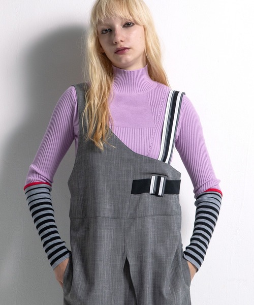 毎年大人気のカラーブロックリブニット。今シーズンは、肘下~袖口を配色パイピングで切り替え、細ボーダー+太ボーダーの配色デザインに。袖丈は長めで、フィンガーホール付き。身頃は細リブと太リブの変形リブの柄編みで、襟から胸下にかけてのVライン柄が細見え効果あり。短めのハイネック。伸縮性が高く、もちもちした肌触りが良い糸を仕様。シルエットは綺麗めに仕上がっていて身体のラインを拾い過ぎないところも◎※生産の都合上、商品の納期が変更となる場合がございます。※商品の画像はサンプルのため、実際の製品とは仕様や加工、サイズ等が若干異なる場合がございます。