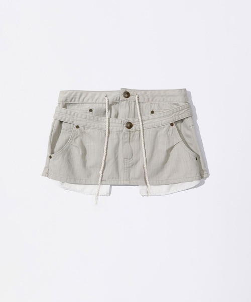 レイヤードデザインのデニムスカート。 フロントのドローストリングがワンポイントのアイテムです。 ----------------------------------------------- 【SCULPTOR】 SCULPTOR(スカルプター)は、ブランド名の意味する「彫刻家」のように、 パターンやシルエット等、細かいディテールまで繊細にデザインして丁寧に作品(洋服)を仕上げるというコンセプトにより誕生したファッションブランドです。 レトロカルチャーを基盤としつつ、現代的な感性と融合させた独自の世界観が確立されています。 Instagram : @sculptor_jp tiktok : @crewsculptor_jp ---------------------------------------------- [NOTICE] ・アテンションタグや洗濯表示を必ずご確認の上、ご使用下さい。 ・素材の特性上、他の物との摩擦によりピリング(毛玉)が生じることが有ります。 ・プリント部分は永久的なものではなく、長期間の使用や摩擦により、徐々に剥がれや欠損が生じます。 ・ご覧のモニター環境や撮影環境により、実物の商品と多少色味が異なって見える場合がございます。 また表示のサイズ感と実物は若干異なる場合もございますので、予めご了承ください。
