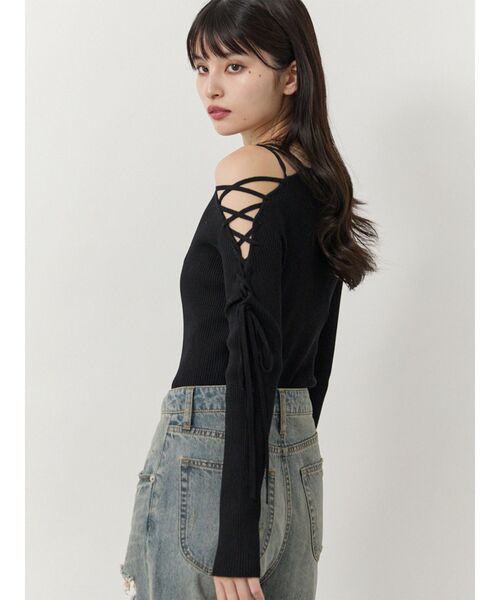 大人気のレースアップデザインが秋冬バージョンで登場!さりげない肌見せが女性らしさを演出◎■アイテムレースアップにリボンディテールがトレンド要素満載のニット。ワンショル風のデザインなので、さりげない肌見せで女性らしさを演出してくれます。ベーシックなシルエットなので、ボトムスを選ばず着用いただけます。ミニスカート合わせでレディに着るのもおすすめですが、パンツ合わせでカジュアルダウンさせるのもおすすめです◎--------------------------------------------生地の厚さ:普通 伸縮性:あり透け感:なし サイズ感:普通-------------------------------------------- 【知って得する便利機能◎ 】■商品のお気に入り登録再入荷時、ラスト1点の時にお知らせします。■ブランドのお気に入り登録新商品やお得な情報など、いち早くお得な情報をゲット!ぜひご活用ください!※着用画像はフラッシュの加減で実際の製品と色味等が異なる場合がございますので、生地のズームアップ画像をご確認ください。※ご利用の端末画面の設定により実際の商品と色味が異なる場合がございます。