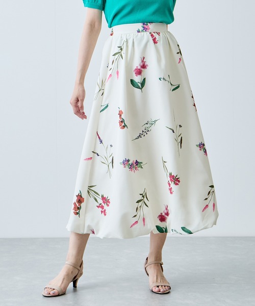 【デザイン・シルエット】 ふわっとしたシルエットが可愛いバルーンデザインスカート。 トレンドの大きめボタニカルフラワーが華やかなデザインに◎ ほどよいハリのある生地がきれいなフレアシルエットを生み出し、エレガントな印象を演出します。 後ウエストのみゴムの仕様でフロントはスッキリと見せつつ着脱が楽ちんなのも嬉しいポイントです。 【素材感】 ほどよいハリと光沢のあるポリエステル素材 【カラー】 01クロ 15オフ 40コン 【スタイリングポイント】 一枚で主役になるアイテムなのでトップスはシンプルなデザインでもサマになります。 ブラウス合わせでフェミニンに、Tシャツなどラフに合わせて大人可愛いコーデもおすすめ。 ノースリーブや長袖のトップスとも合わせられるので、シーズンレスで着回しをお楽しみいただけます。 足元はスニーカーからヒールまで相性抜群ですが、華奢なヒールを合わせるとバルーンシルエットが映え、上品なコーデが完成。 裏地:あり 光沢感:ややあり 透け感:なし ポケット:なし 伸縮性:なし 生地の厚さ:普通 ボタン:なし その他仕様:後ウエストゴム 季節:春夏秋冬 ※撮影時の光、お使いのモニター環境によって色の見え方が違う場合がございます。予めご了承ください。 モデル身長:166cm 着用サイズ:M
