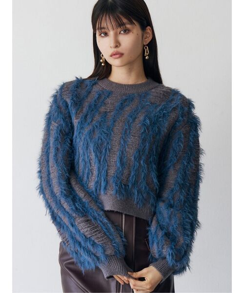 配色がMURUAらしいシャギーニット 他と被らない秋冬の主役アイテム◎ ■アイテム シャギーをランダムに施し、フリンジ見えする切りっぱなしのデザインに仕上げたニット。 バイカラーでMURUAらしい配色にしました。 シャギーの量やボリューム感にもこだわり、張り感が出ないよう拘ったアイテムになっています。 ゆったりとしたサイズ感ですが、短丈なのでバランスの良いシルエットにこだわった一着◎ インパクトのあるデザインなので、ボトムスはシンプルなワイドパンツやレザースカート合わせがおすすめです。 -------------------------------------------- 生地の厚さ:普通 伸縮性:あり 透け感:なし サイズ感:普通 -------------------------------------------- 【知って得する便利機能◎ 】 ■商品のお気に入り登録 再入荷時、ラスト1点の時にお知らせします。 ■ブランドのお気に入り登録 新商品やお得な情報など、いち早くお得な情報をゲット! ぜひご活用ください! ※着用画像はフラッシュの加減で実際の製品と色味等が異なる場合がございますので、生地のズームアップ画像をご確認ください。 ※ご利用の端末画面の設定により実際の商品と色味が異なる場合がございます。